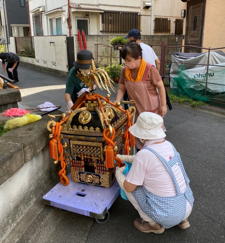 シンクとパイプを取り外して、お皿やコップの整理、お堂を元に戻して、テーブルとビールケースを運んで、10:30にはまたいつものお稲荷さんと駐車場に原状復帰。ゴミも分別してまとめて、13:00には清掃車が取りに来てくれました。日照りの苦しさがなく、天候に恵まれたお祭りでした。